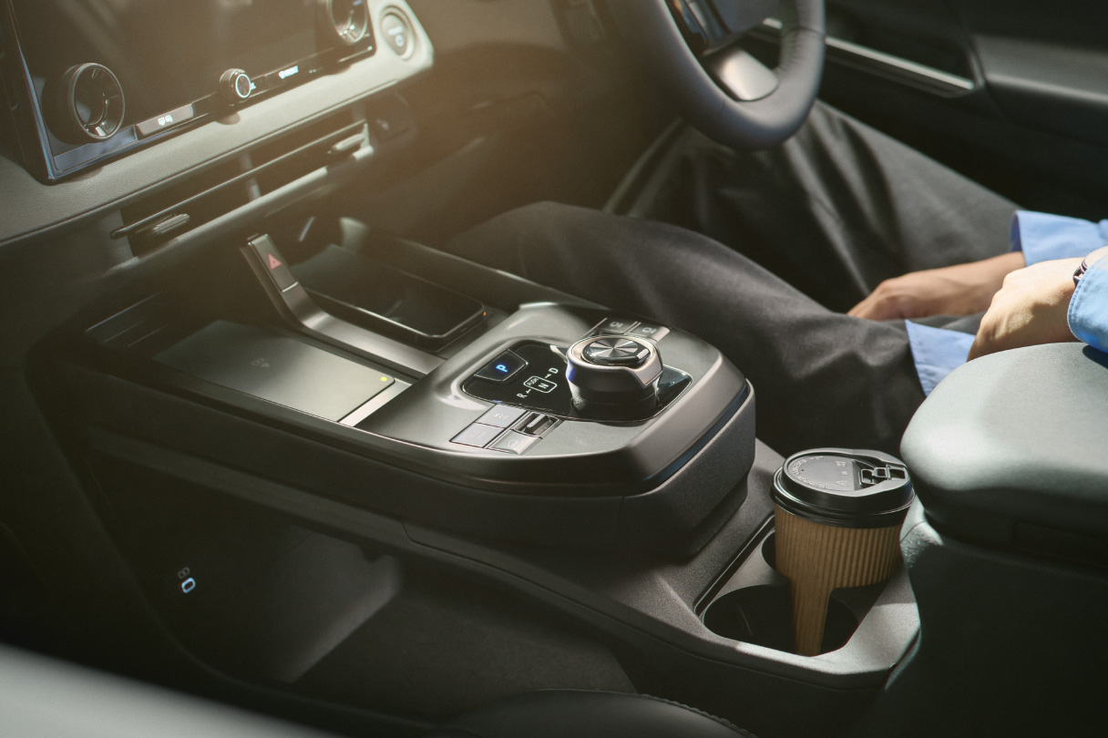 コンパクトなダイヤル式のシフトスイッチで、優れた操作性を実現しました。押し下げて、右に回すとドライブポジションに、左へ回すとリバースに切り替わります。