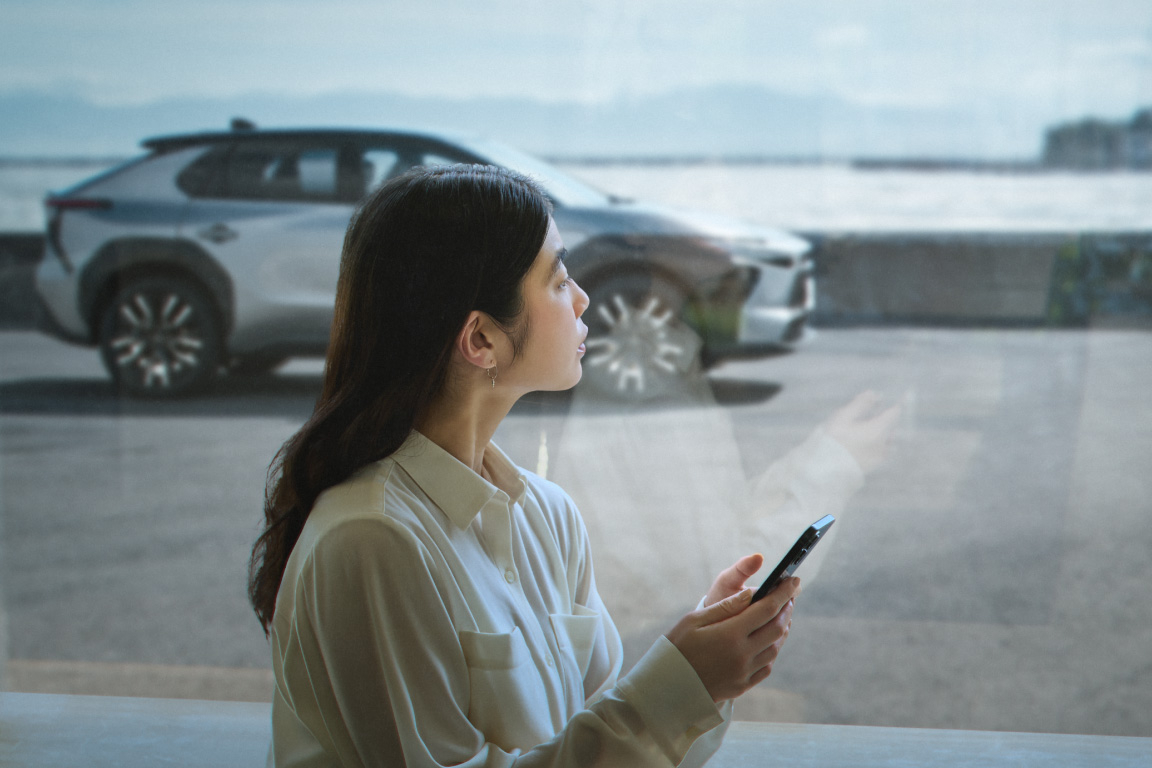 朝、充電を終えたbZ4Xのドアを開ける時。