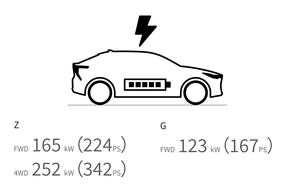 ■写真はZ(4WD)。ボディカラーのアティチュードブラックマイカ〈218〉×プレシャスメタル〈1L5〉[2YJ]はメーカーオプション。ソーラー充電システム、235/50R20タイヤ&20×7½Jアルミホイール(切削光輝+ブラック塗装/エアロホイールカバー/センターオーナメント付)はメーカーオプション。
