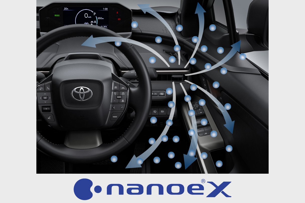 ナノイーXは、ナノイーに比べて、効果の元であるOHラジカルをより多く含む微粒子イオンです。インパネの運転席側吹き出し口から室内へ放出され、車室内を快適な空気環境に導くナノイーがさらに進化しました。