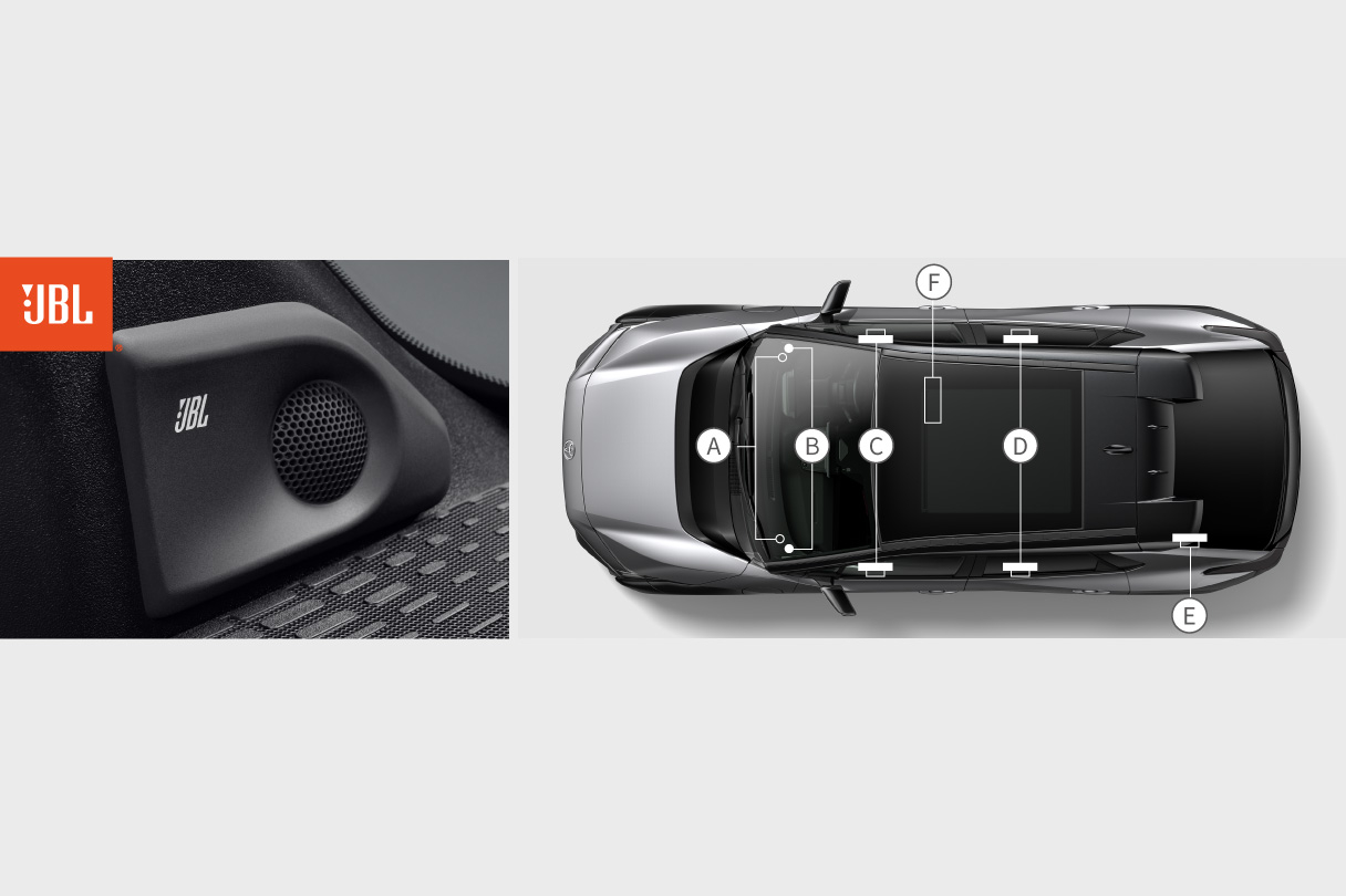bZ4Xの静かな室内空間に合わせて、9つのスピーカーを配置し、高性能なJBL専用アンプを最適にレイアウト。さらに、前席にJBLの代名詞でもあるホーンツィーターを採用するなど、室内全体に力強く表情豊かなサウンドが響く設計としています。