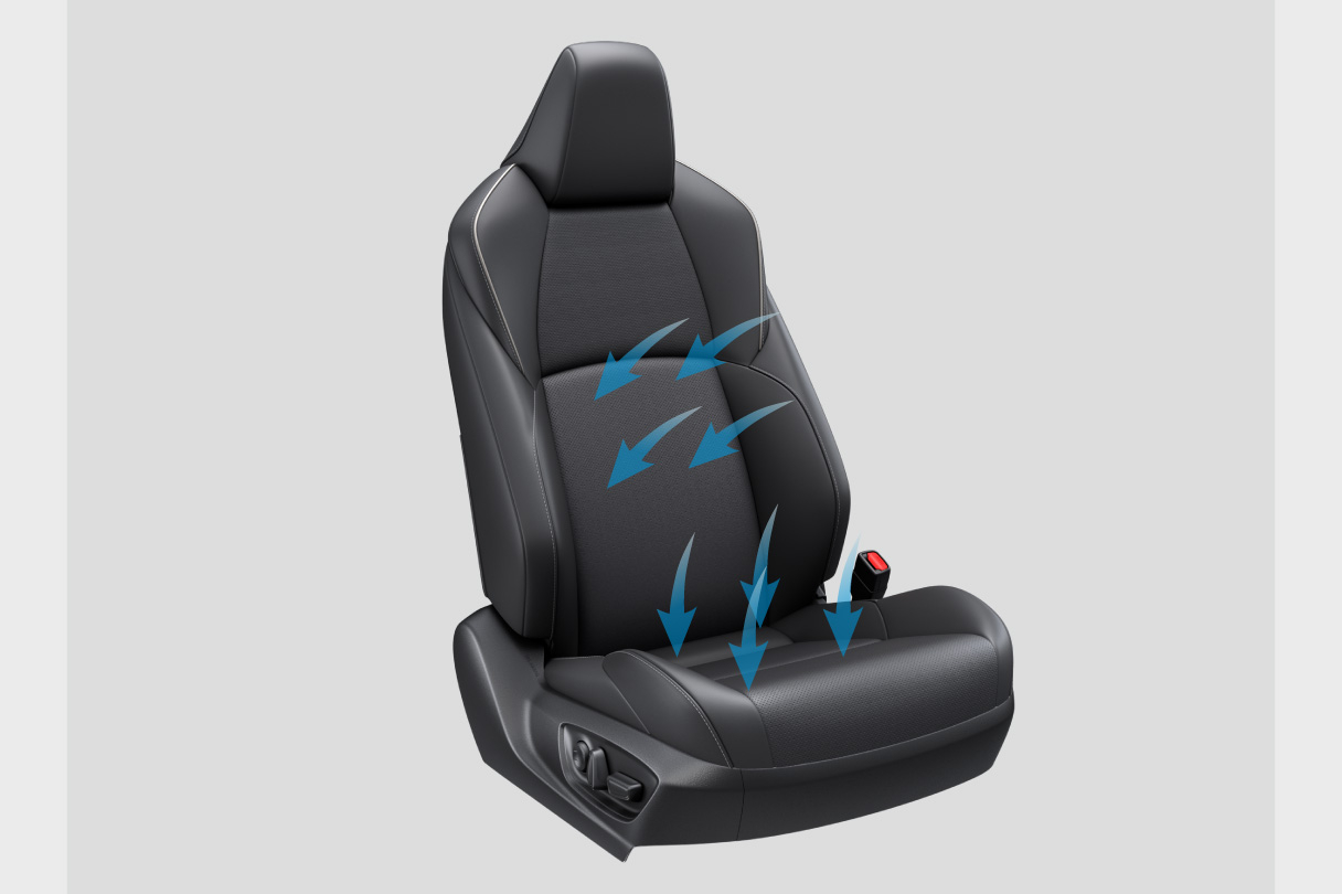 前席の背もたれ面と座面にシート表皮の熱気を吸い込むことで冷涼感をもたらすベンチレーション機能を設定。シート自体がエアコンの冷風を吸い込む方式となり、より短時間で冷涼感を得ることが可能になりました。