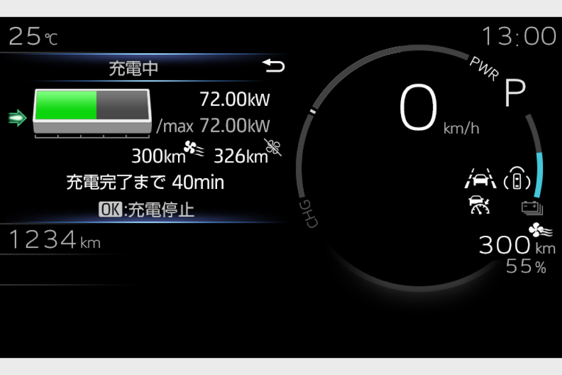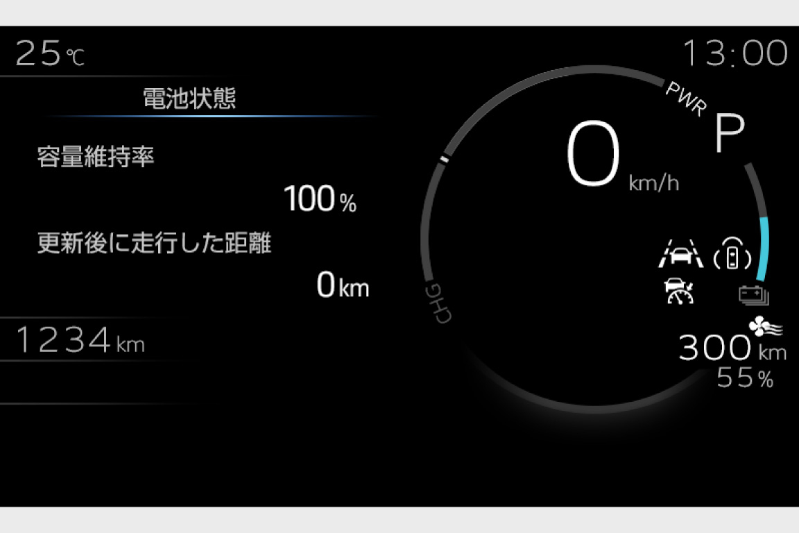 バッテリーの充電残量やタイヤの空気圧など、ドライブに役立つ情報を運転席から見やすい位置(マルチインフォメーションディスプレイまたはディスプレイオーディオ)に表示。快適かつ安心な移動をサポートします。